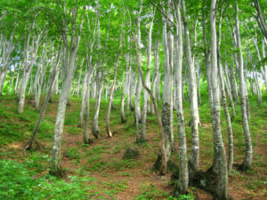 標高1000m付近のブナ林 標高300m付近のブナ林
