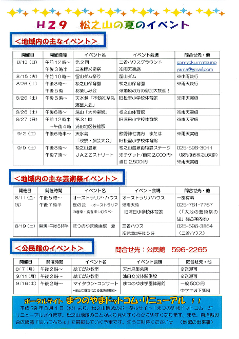 同時に、松之山地内夏のイベント情報をまとめましたのでご利用ください。