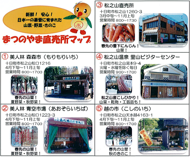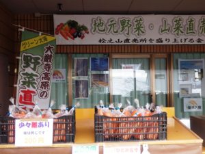 越後松之山で作られた新鮮な野菜や山菜をはんばいしている「直売所。採れたてで、しかも安全な特産物をお客様との信用を元にお安くお買い求めになることができます。