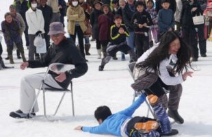 むこ投げは、江戸時代から松之山天水越に伝わる小正月行事で、 昔は、観音様の祭り…