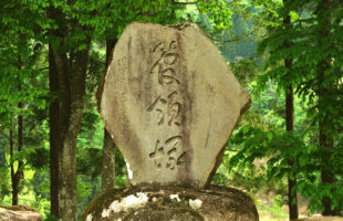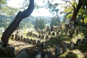 小谷集落から1,5キロメートルほど離れた山頂・子安峰の松の根にどっしりと鎮座する…